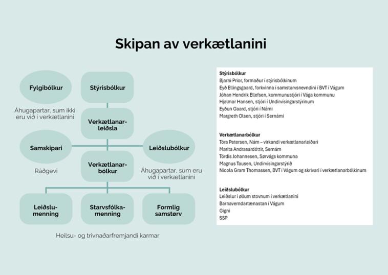 Verkætlanarleiðslan saman við verkætlanarbólkinum skipar dagliga raksturin og tilgongdina.