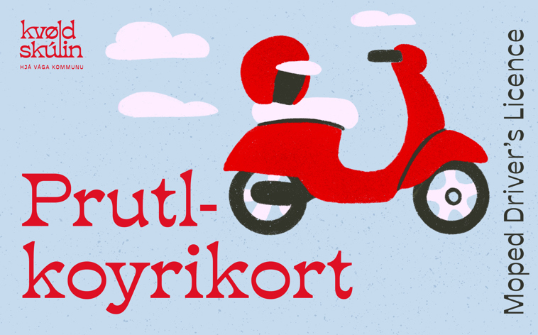Hevur tú glett teg til at taka prutlkoyrikortið? Skeiðið byrjar eftir heystfrítíðina, nærri kunning um dato kemur seinni. Karl Vidtfeldt stendur fyri skeiðinum. Eisini tekur tú fyrstihjálparskeið í hesum sambandi.